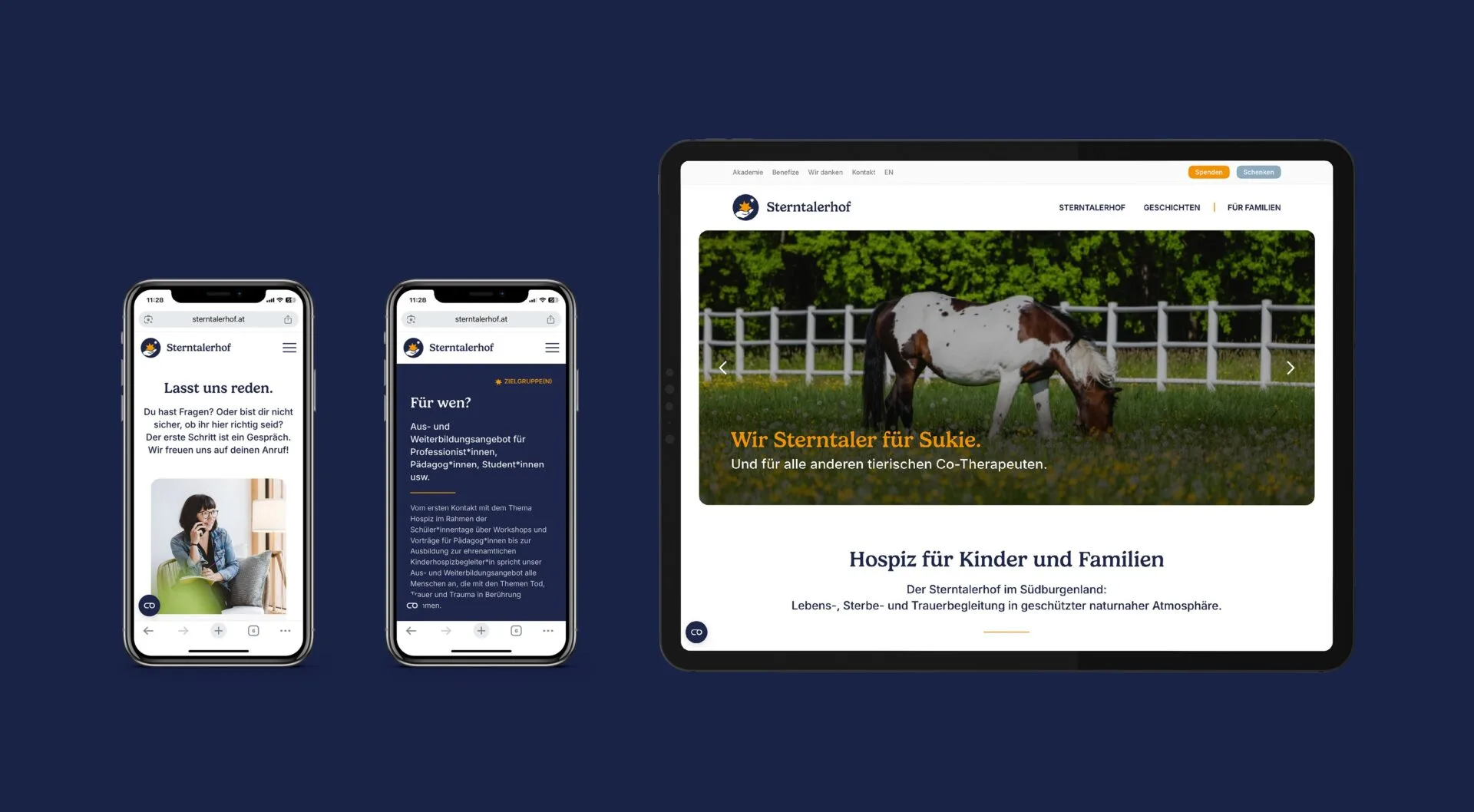 Neue Kraft, neuer Mut und neue Zuversicht – für Kinder und Familien, deren gemeinsames Morgen in den Sternen steht. Am Sterntalerhof werden Familien mit schwer oder tödlich erkrankten Kindern aufgefangen und auf ihrem Weg zurück in den Alltag begleitet. Kern der Arbeit ist die stationäre Betreuung in der naturnah gelegenen Anlage im Südburgenland: Betroffene Familien verbringen hier ein- bis zweiwöchige Aufenthalte, meist mehrfach im Jahr, über viele Jahre hinweg – und auch über den Tod eines Kindes hinaus. Begleitet werden sie von einem interdisziplinären Teams aus Therapeutinnen, Psychologen und Sozialarbeiterinnen, die auf eine Vielzahl unterschiedlicher Therapieformen zurückgreifen können, darunter auch hochwirksame tiergestützte Therapieformen mit speziell dafür ausgebildeten Pferden.